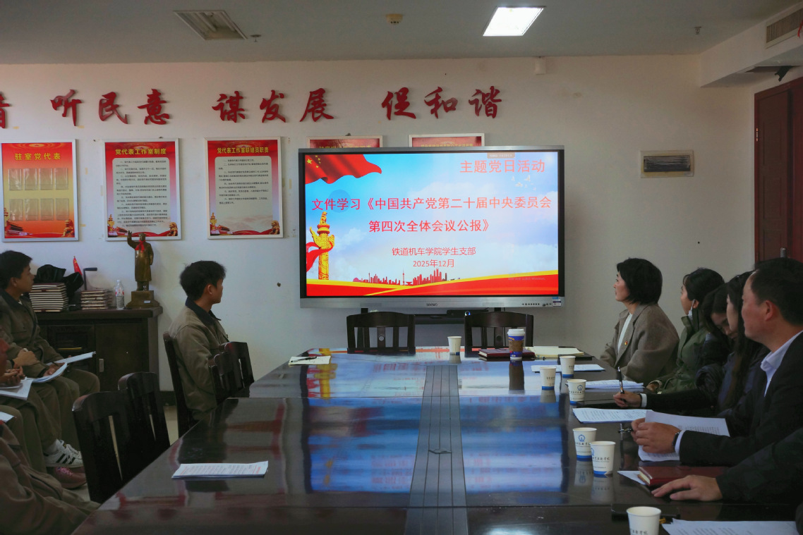 为深入学习贯彻党的二十届四中全会精神,切实把思想和行动统一到党中央决策部署上来,12月19日,铁道机车学院党总支组织全体党员开展主题党日活动。专题学习《中国共产党第二十届中央委员会第四次全体会议公报》,在理论学习中凝聚奋进力量,在思想碰撞中明晰使命担当。